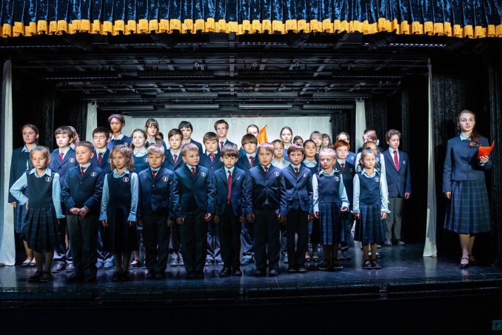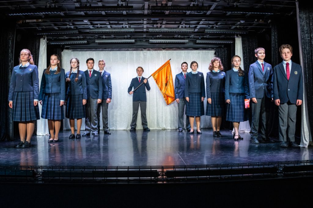 А по завершении спектакля первоклассники и пришедшие к нам дети более старших классов прошли через традиционную церемонию Посвящения в лицеисты. Их торжественно наградили старшие ребята Золотой и Серебряной лиги, лидирующие в результатах обучения.