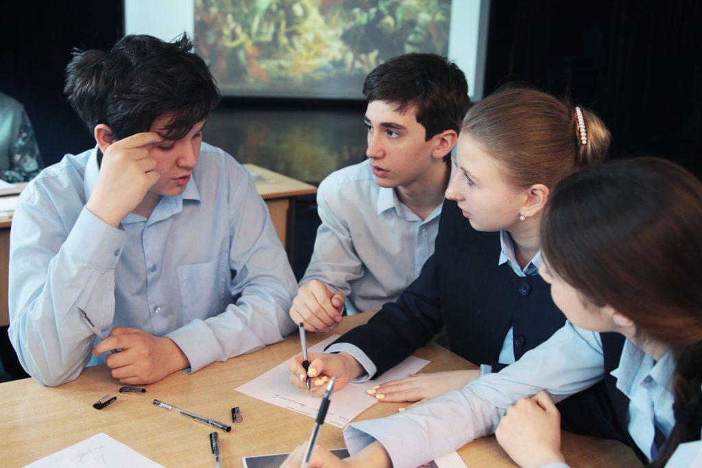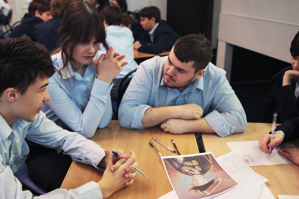 Ребята с 7 по 10 классы были разделены на шесть команд. Каждой команде были предложены интересные вопросы и задания. Например, были показаны отрывки из исторических фильмов, и детям нужно было понять, что это за фильм, назвать его автора, назвать историческое событие, которому этот фильм посвящен.