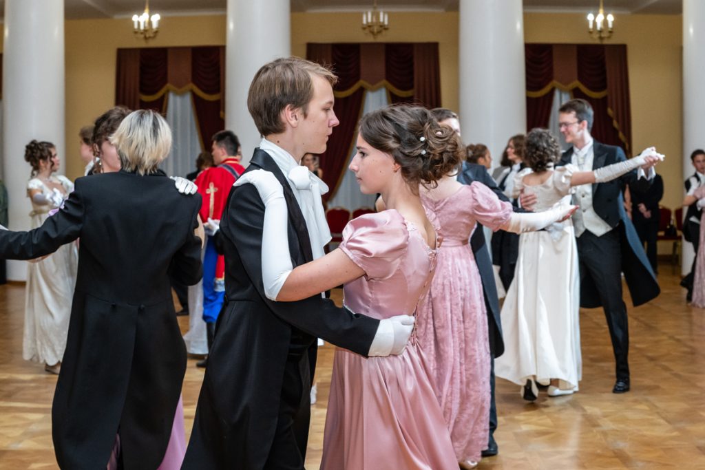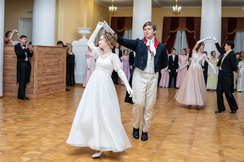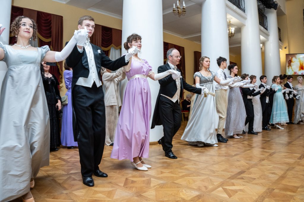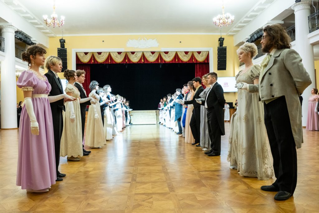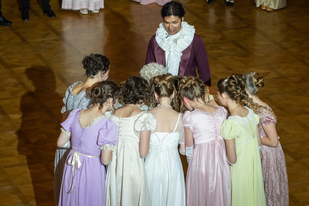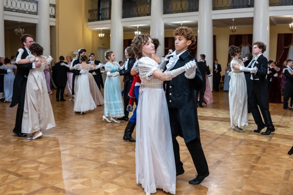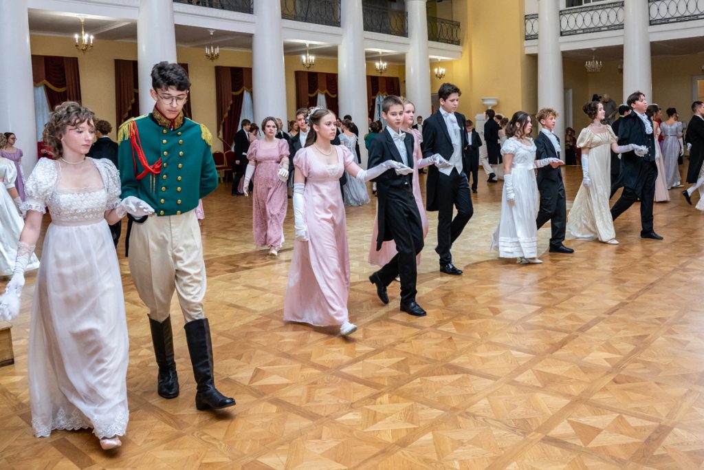 Как весело было пробежаться галопом в «ручейке» и поиграть в фанты — даже повеселиться мы успевали в перерывах между танцами и инсценировками классических произведений, в которых звучит тема бала.