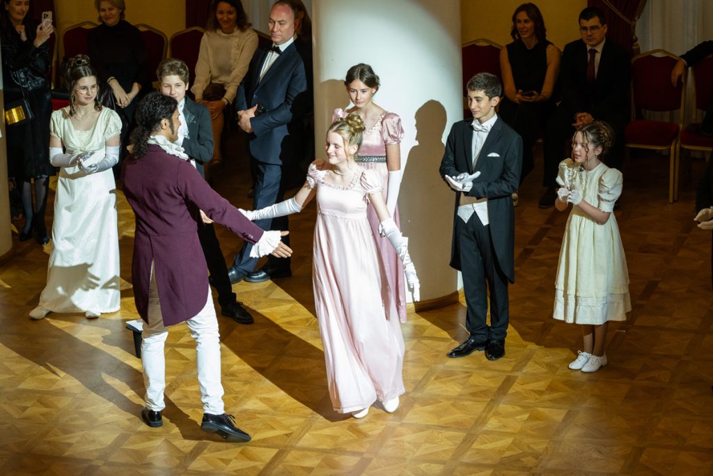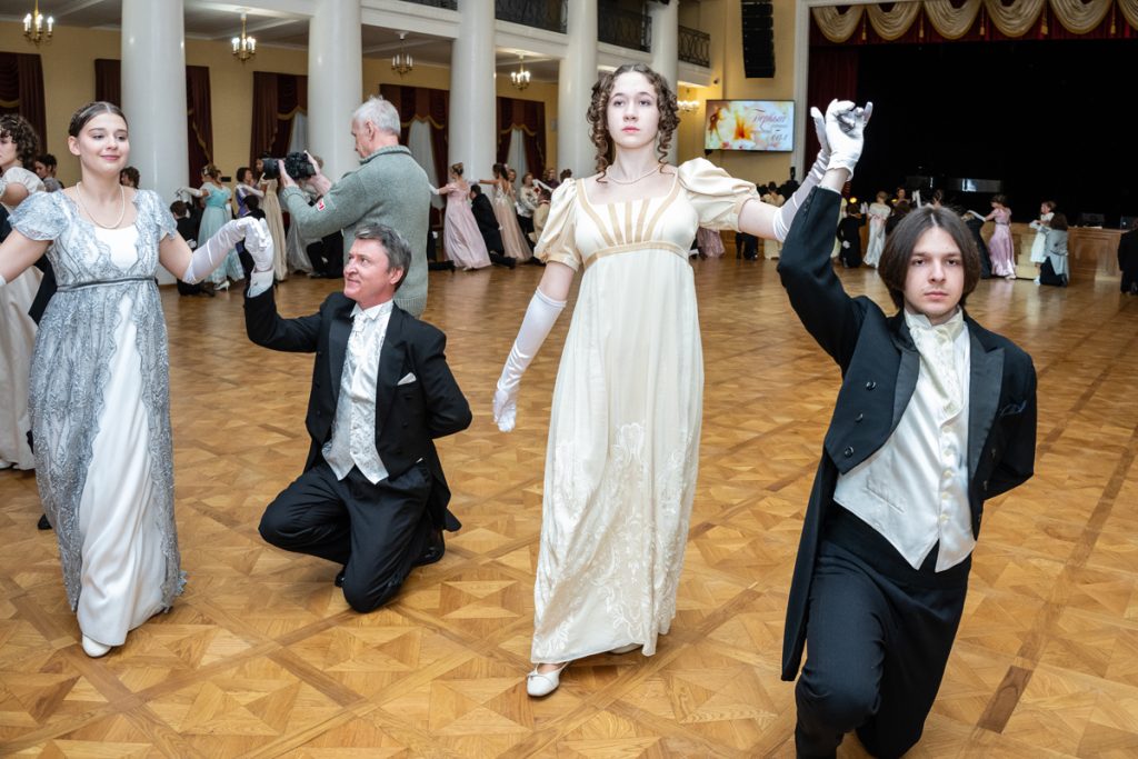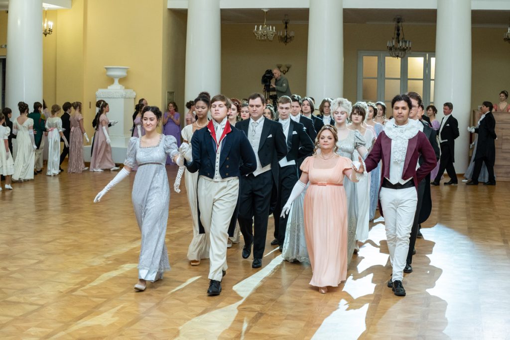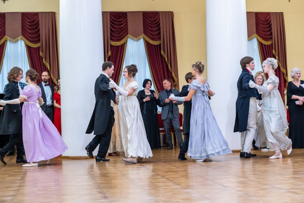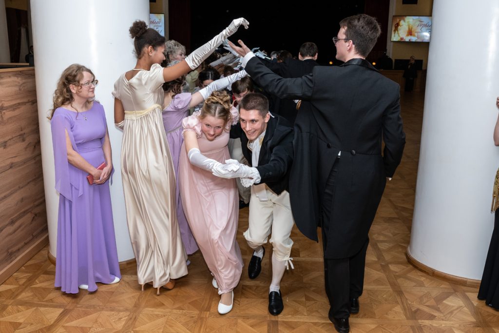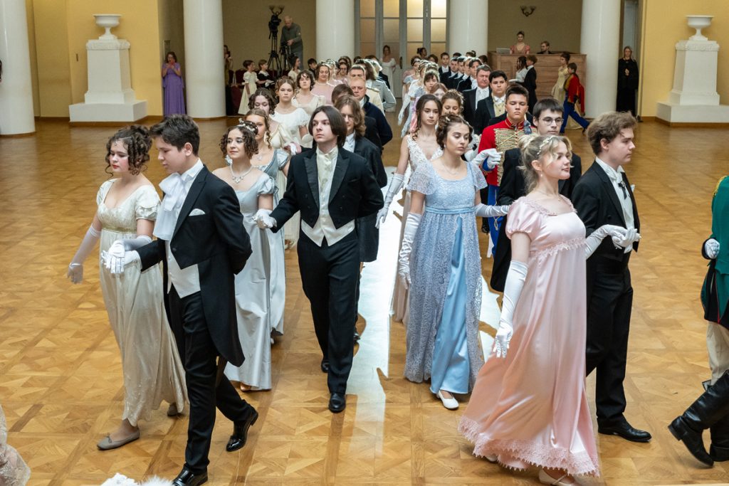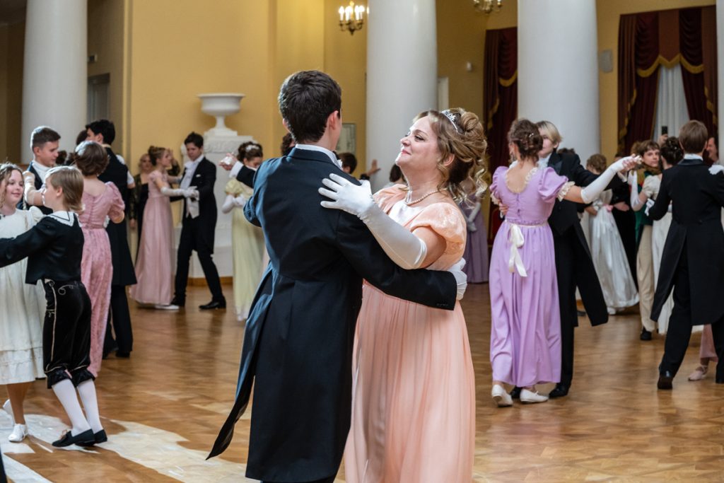 Как весело было пробежаться галопом в «ручейке» и поиграть в фанты — даже повеселиться мы успевали в перерывах между танцами и инсценировками классических произведений, в которых звучит тема бала.