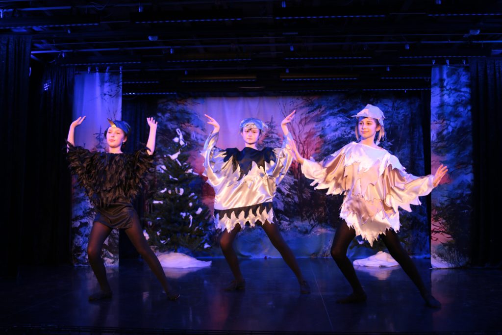 Особенно ценно для нас сплочение всех ребят в одном большом театральном действе. Здесь были вплетены и хореографические номера с актерами-птичками, снежинками, цветочками, даже кикиморами, и фольклорные обрядовые песни в сочетании народными танцами. Наши дорогие режиссеры, музыканты, хореографы и актеры показали сегодня настоящее мастерство – это ли не есть новогоднее чудо?..