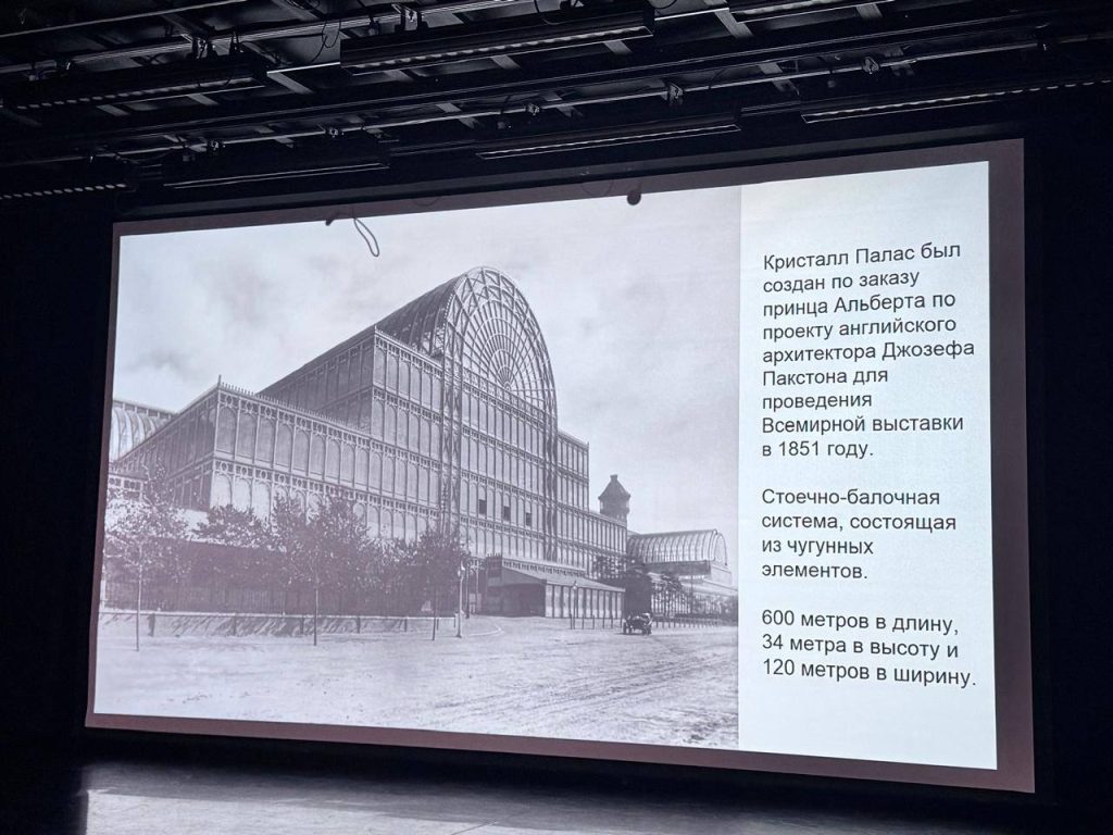 Также ребята узнали о связи архитектуры с боязнью эпидемий и болезней. Невиданные до этого в архитектуре металлические каркасы с остекленением не только образовали совершенно новый вид архитектуры — пассажи (примером является московский ГУМ), но и стали прототипом современных зданий.