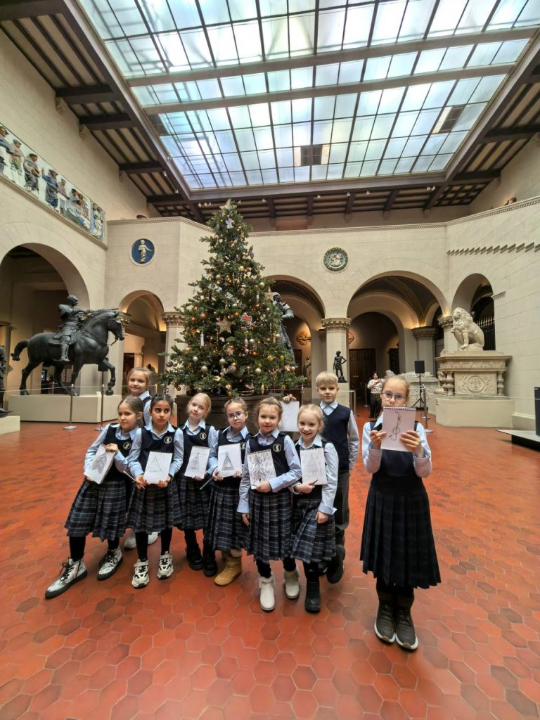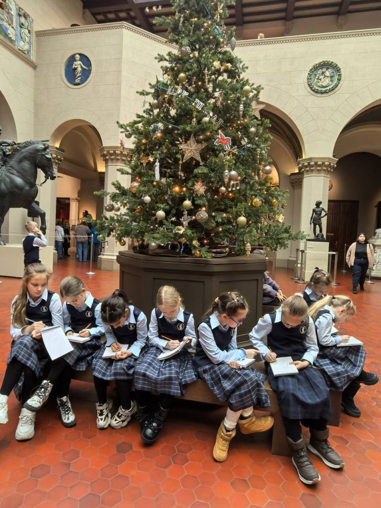 В конце нашего путешествия лицеистов ждал Итальянский дворик, где мы наглядно увидели, как последующие культуры вдохновлялись античными идеалами. В преддверии Нового года в Итальянском дворике по старой традиции музея была установлена красивая ёлка, набросками которой мы завершили нашу экскурсию.