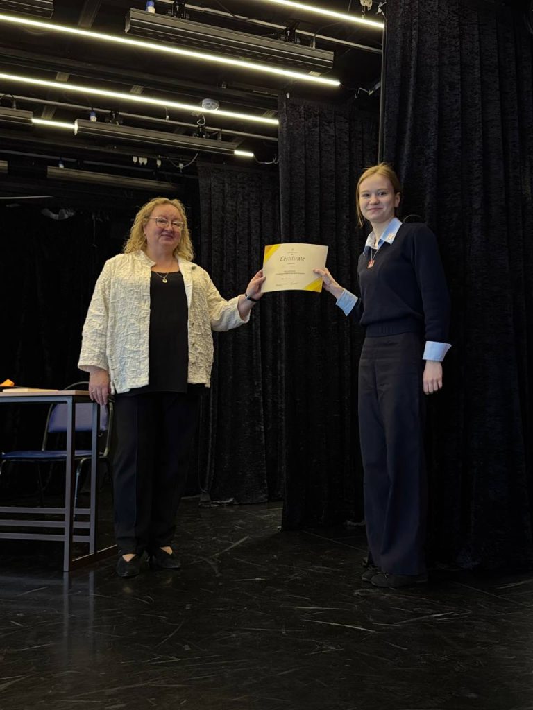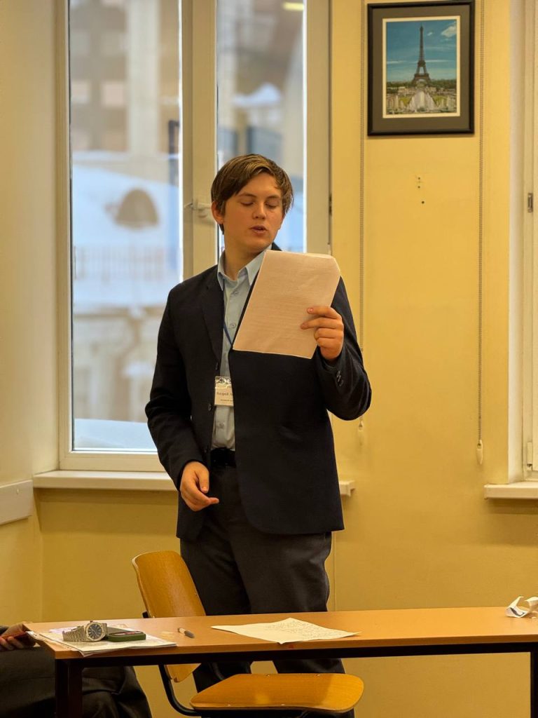 1 место — Гриша Рискин (10 класс) 2 место и победитель в номинации «Лучший оратор турнира» — Оля Нехаева (10 класс) 3 место — Вера Никитина (9 класс) и Андрей Афанасьев (10 класс)
